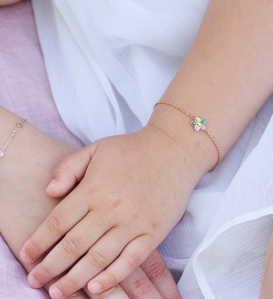 Bracelet Floral cordon coton - Or rose 750/1000, émeraude et saphirs
